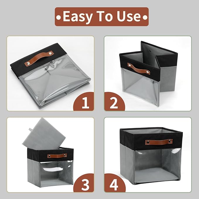 HNZIGE Cube Storage Bins 11 x 11, Fabric Cubes Storage Bins 11x11 Clear Storage Organizer,Canvas Storage Bin for Cube Storage, Cubby Collapsible Organizer Bin for Organizing Home(Gray Black 6PCS)