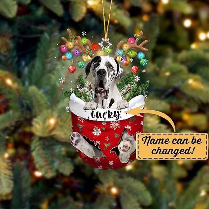 Great Dane 2 Dog Christmas Ornament, Great Dane 2 in Snow Pocket Christmas Tree Ornament, Dog Lovers Gift Idea Xmas Decor, Christmas Decorations for Tree, Christmas Ornament Gift for Dog Lovers