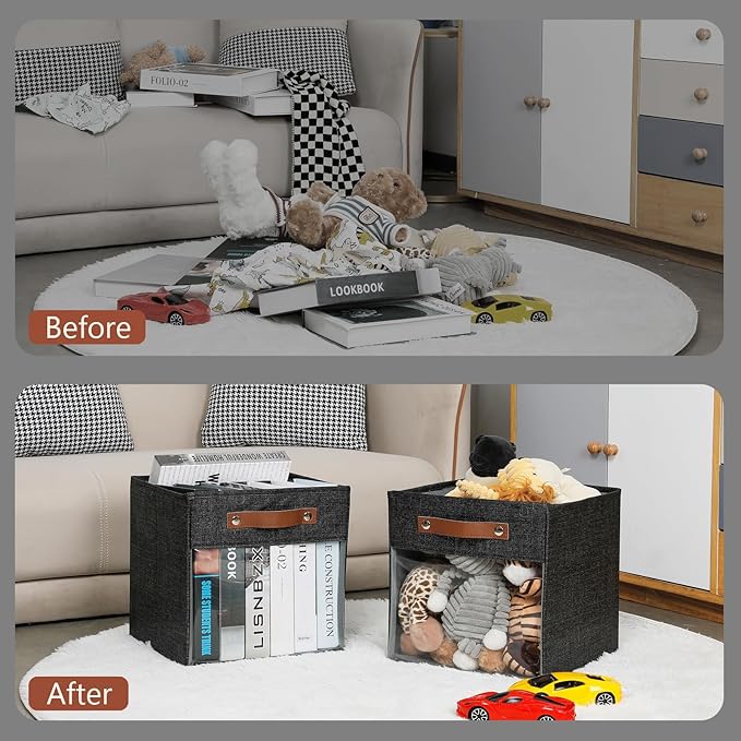 - 【FOLDABLE AND GOOD STORAGE】These decorative bins for cube organizer are foldable and easy to operate, just pull up the bottom plate to fold. When not in use, canvas storage bins for cube organizer is easy to fold flat, convenient storage occupies less space. At the same time, reduces the effort spent on storage.