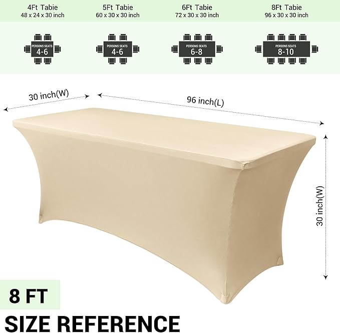 Obstal 8Ft Stretch Spandex Table Cover for Standard Folding Tables - 2 Pack Universal Rectangular Fitted Tablecloth for Party, Banquet, Events, Trade Show (Champagne, 96L x 30W x 30H Inches)