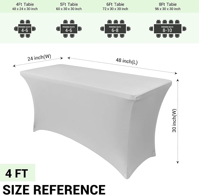 Obstal 4Ft Stretch Spandex Table Cover for Standard Folding Tables - 2 Pack Universal Rectangular Fitted Tablecloth for Party, Banquet, Events, Trade Show (Silver, 48L x 24W x 30H Inches)