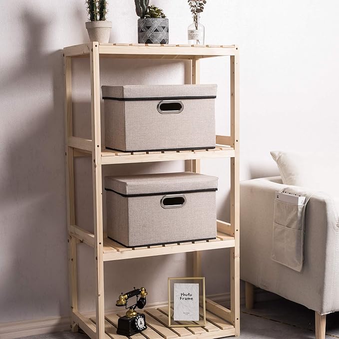 - 【Fashionable Bins】Designed to match interior decor and style in any room in the home or office. Enjoy the relaxing ambiance of the soft light gray and natural black neutral color scheme.