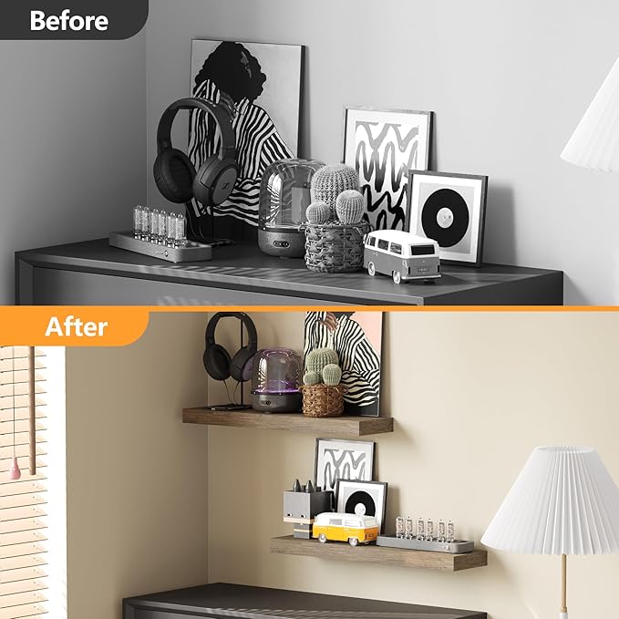 - Concealed support & simple installation: The support design that extends into the shelf is strong and can hide the bracket well, achieving a simple and beautiful decorative effect; Moreover, the installation is very simple; The parts and installation instructions for installation are included with the package; The installation can be completed in as short as 15 minutes as long as the order of the instructions is followed