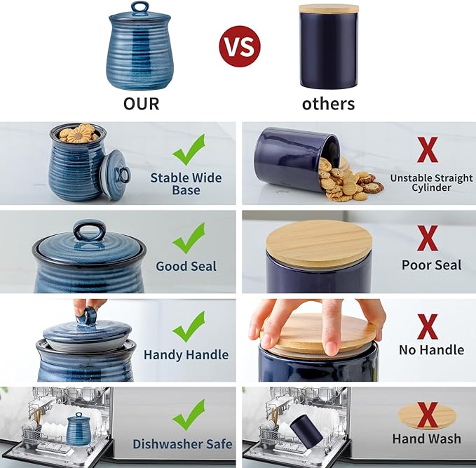 - SAFE TO USE: Hasense cookie jar is made of pro-grade porcelain which is more durable and sturdy than other materials. With smooth and glossy surface, the airtight container are easy to clean with soap and water or you can put it into dishwasher to clean.