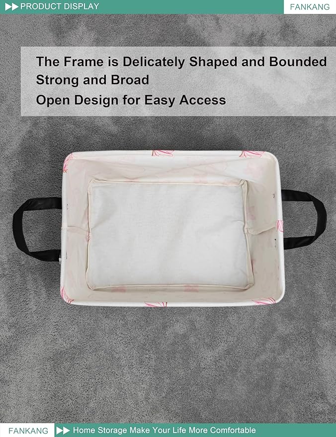 FANKANG Storage Bins, Nursery Hamper Canvas Laundry Basket Foldable with Waterproof PE Coating Large Storage Baskets for Kids Boys and Girls, Office, Bedroom, Clothes,Toys(Rec-pink butterfly