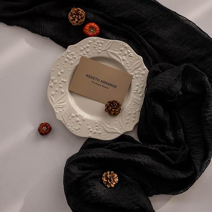 6pcs Halloween Table Runner Black Cheesecloth Gauze Rustic Premium Cotton Cheese Cloth Table Runner 120 Inch 10 FT for Wedding Bridal Baby Shower Long Sheer Boho Christmas Decorations