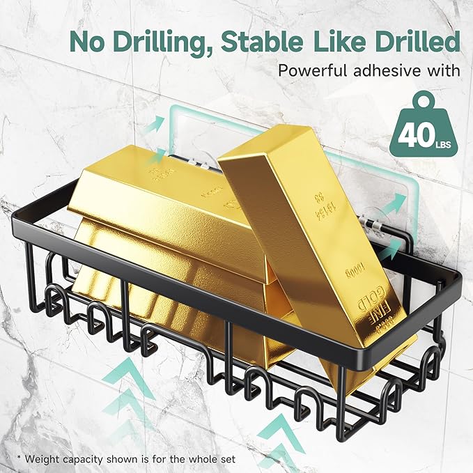 - Waterproof & Rust-Resistant: Designed for use in high-moisture areas, this caddy is made from rustproof and waterproof materials. It resists corrosion over time, keeping your shower organization solution looking pristine in damp environments.