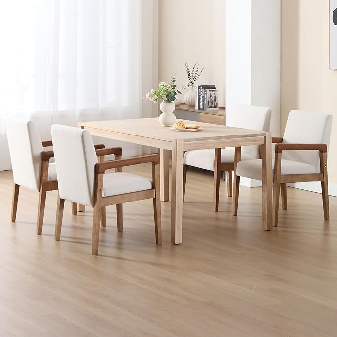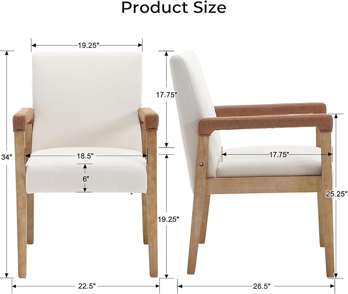 Mid Century Modern Dining Chairs Set of 2 Linen Fabric Upholstered Living Room Side Chair, Kitchen Arm Chair with Solid Wood Legs for Home Kitchen & Restaurant, Linen White