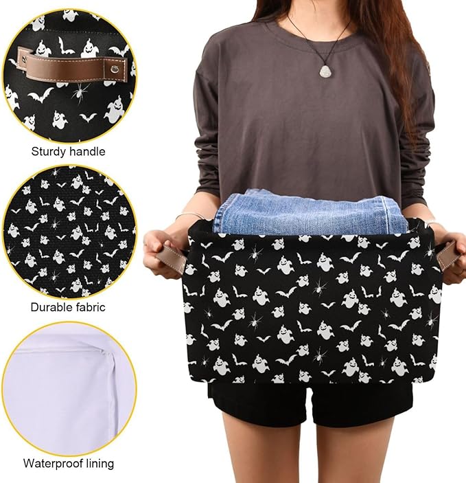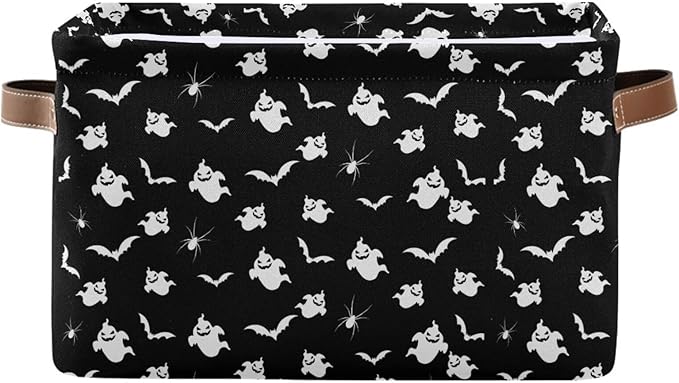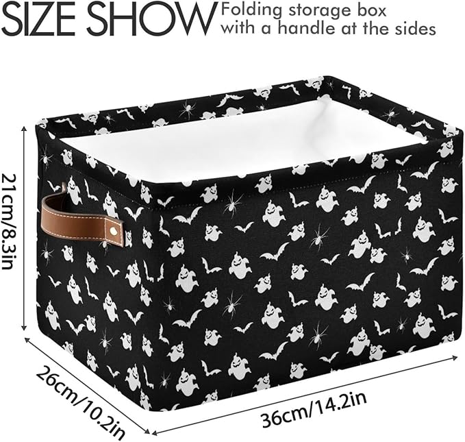 Storage Basket Bin Halloween Ghost and Bat Organizer Basket Collapsible Shelf Basket Cube with handle for Nursery Bedroom Bathroom (white 26)