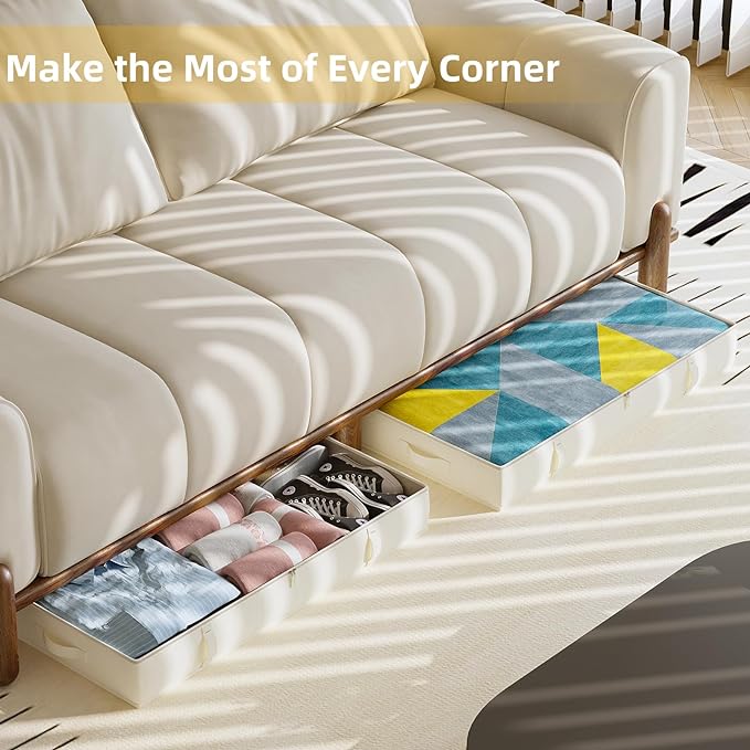 - Your room can be more organized - thanks to our STURDY underbed storage bins, you can place it under the bed, in the closet, on top of the closet, even under the sofa, or any other small spaces in your home. You'll find it so helpful that your home will seem bigger!