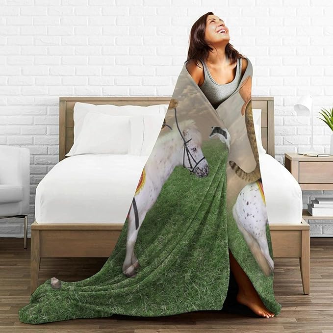 HGOD DESIGNS Funny Cat Throw Blanket Ultra Soft Warm All Season The Cat Cowboy on a Horse Decorative Fleece Blankets for Bed Chair Car Sofa Couch Bedroom 50"X60"