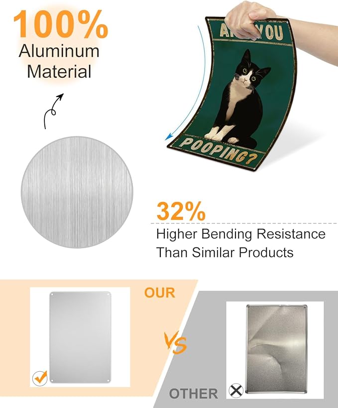 - 【Durable and Weather-Resistant】The toilet signs for bathroom are made from 100% rust-free strong aluminum, This black cat decor vintage metal sign comes in bright, eye-catching colors that won't fade over time.