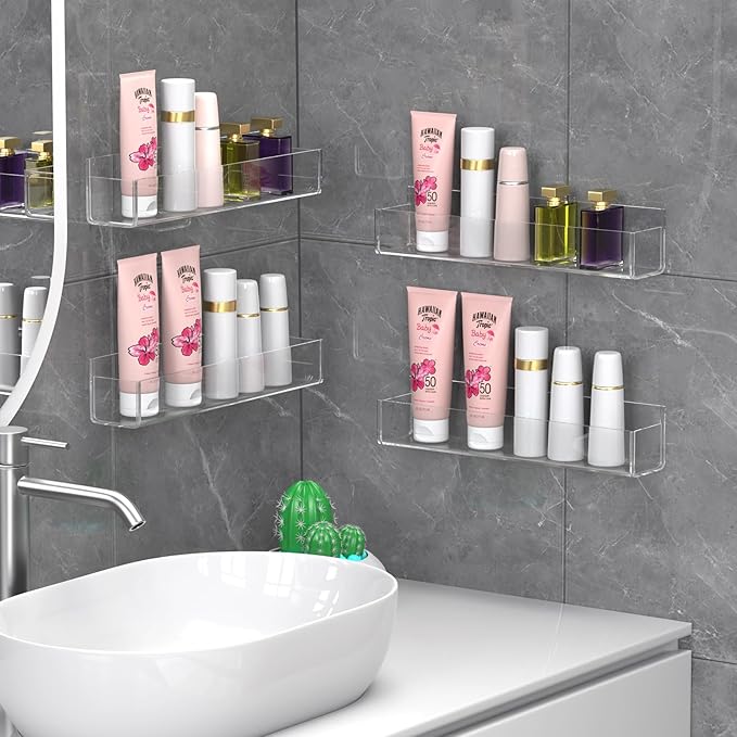 PMMASTO Adhesive Acrylic Spice Rack Organizer for Wall with 2 Nano Double Sided Tape, Spice Shelf Organization for Kitchen Cabinet Door/Pantry Door, Wall Mount Seasoning Rack (Clear-4 Pack)