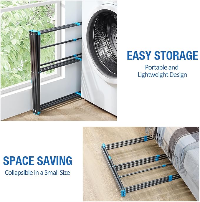 - Material: The APEXCHASER clothes drying rack is made of all metal and has a rust-resistant coating, which can endure different weathers for indoor and outdoor use, making it perfect for apartments or small living spaces.