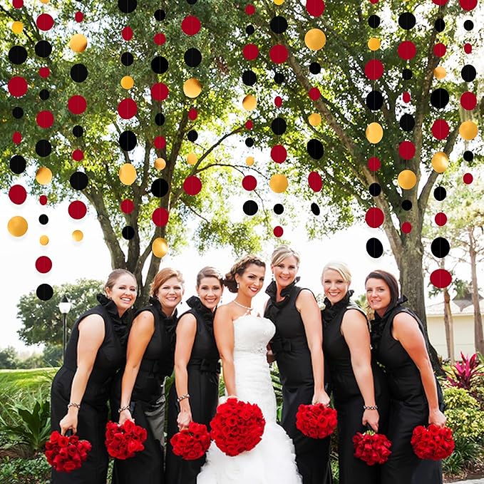 Gold Black Red Party Decorations Circle Dots Streamer Hanging Paper Polka Dots Garland for Graduation Birthday Wedding Anniversary Baby Shower Holiday Pirate Poker Casino Las Vegas Party Supplies
