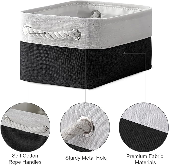 TheWarmHome Storage Bins for Shelves - 6 Pack 11.8x7.8x5.2 inch Collapsible Storage Cubes, Basket for Gifts Empty Closet Organizing Dog Toy Box (White & Black)