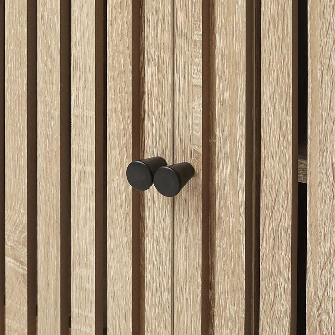 - 【Mid-Century TV Stand】: The mid-century TV stand features sturdy solid wood legs, a slatted door design and breathable storage with sliding doors, making it the perfect place for your TV media equipment.