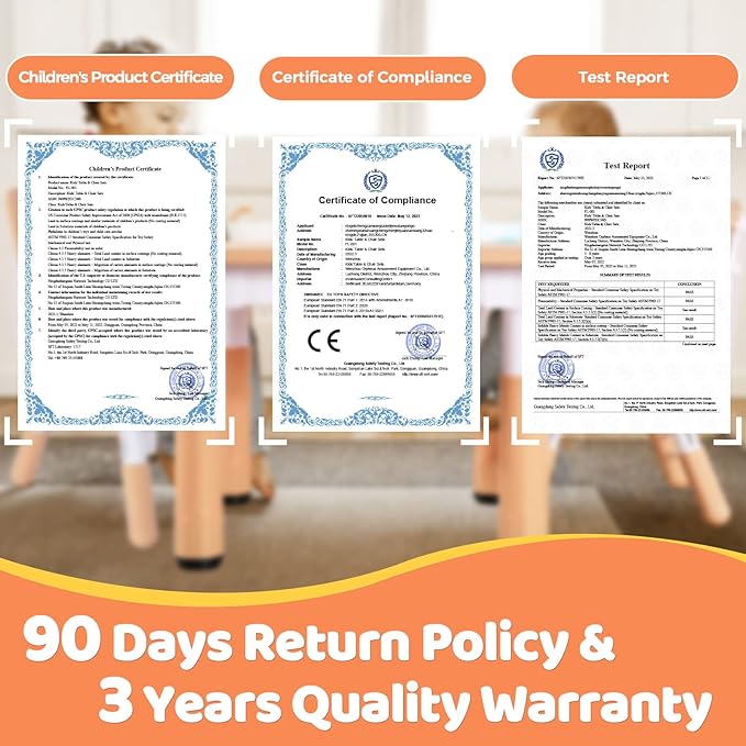- 【CPC & CE certified, Safe & Stable】We focus on every detail to ensure kids' safety. FUNLIO toddler tables and chairs are CPC and CE certified. The set is made of MDF and PPC plastic, healthy materials for children to touch. The items are well made and quite smooth, without any burrs. Rounded table corners keep the child safe. Curved seat back is good for a child's spine while sitting. Adjustable non-slip table feet and the 220lbs weight-bearing capacity help it stand stable on the ground.