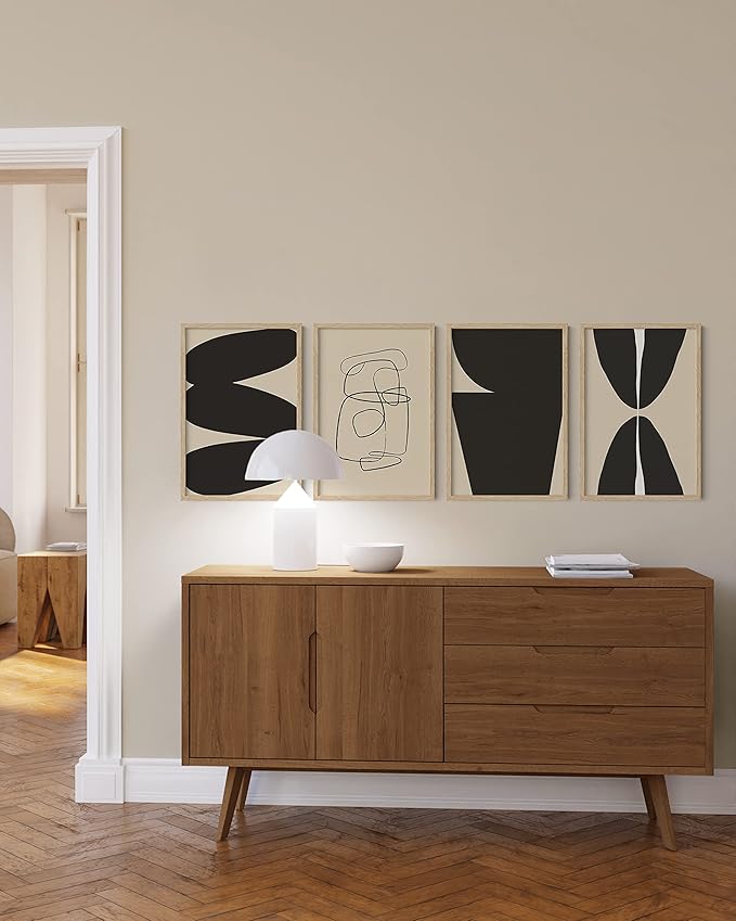 HAUS AND HUES Square Picture Frames 16 x 24 Set of 9 - Photo Gallery Wall Frame Set, Wood 16x24 Frames, 16 x 24 Frames Gallery Wall Set, 16x24 Frame with Mat, Square Frames 16x24 (Beige Oak Frames)
