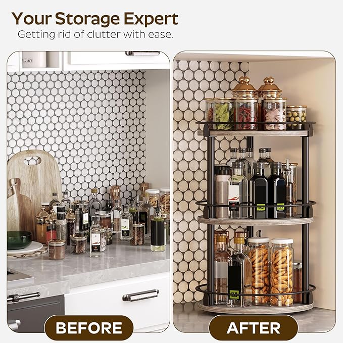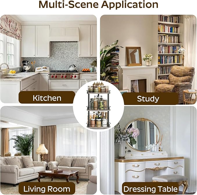 - Capacious Space: Sizing 10.2"L x 10.2"W x 18"H, this lazy susan organizer is divided into 3 layers for layered and partitioned storage to help eliminate clutter. 7.5" layer spacing design facilitates accommodating bottles of different heights