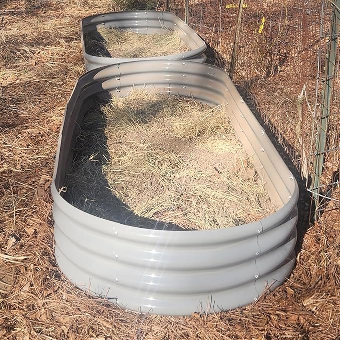 - 【Safety Features】①Anti-rust Coating, do not contaminate soil, safe for plants and humans; ②Oval shape, the raised planter box has rounded corner; ③Thickened crimped edge design, no sharp edges, smooth to the touch; ④ Gloves included; will not hurt your hand when installing or planting