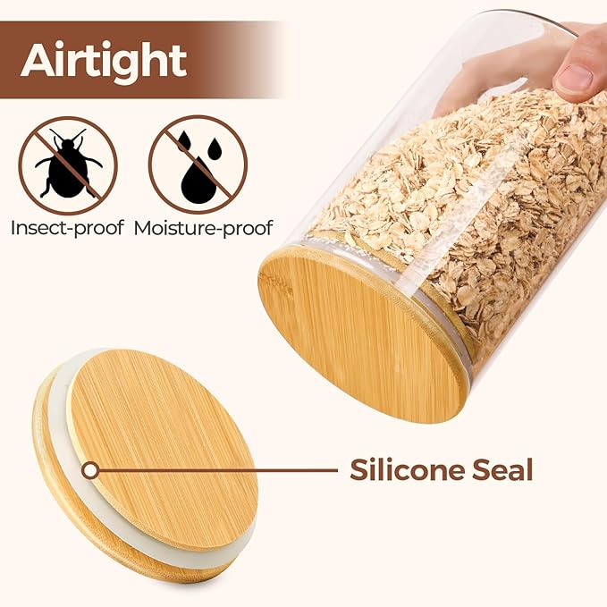 - Versatile Glass Canisters: our 1Qt glass pantry storage containers ideal for storing cereals, cookie, snacks, nuts, oat, or even can use glass jars as meal prep jars, salad jars, candy jar, bath salt jars, spice jars, sugar coffee containers