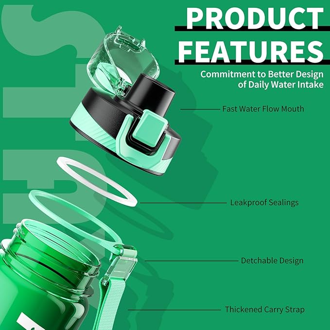 - Easily Open & Leakproof: Our leak proof water bottles flip cap is designed with a safety lock to completely avoid leaks. Our water bottle gives you more freedom and comfort. The wide mouth is easy to clean and add fruit or ice cubes! The drinking spout helps you drink easily and quickly without straw