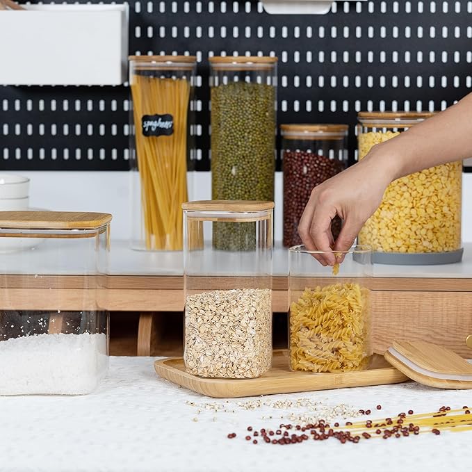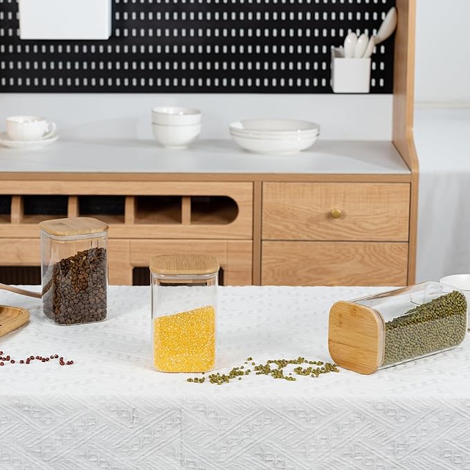 - [Multi-functional glass storage container]- This D2scrma airtight glass canisters with a natural bamboo lid and a good silicone seal ensures an airtight storage environment that keeps items fresh and extends their shelf life. Not only for kitchen storage, but even for pet food or other household items such as laundry beads, bathroom cotton balls, etc.