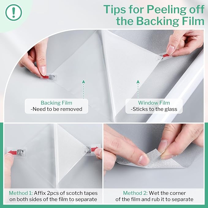 - Static Cling & Easy Installation: Using advanced static cling technology, the frosted glass window film makes it easy to fit the window surface without any adhesive. It is easy to install and remove, and it can be reused many times. With just a few simple steps and no need for professional skills or fussy tools