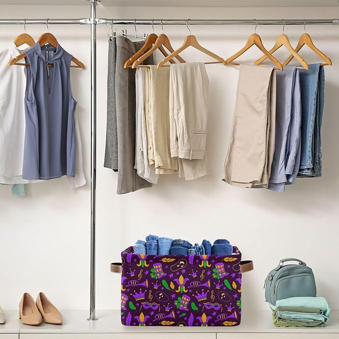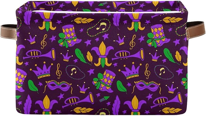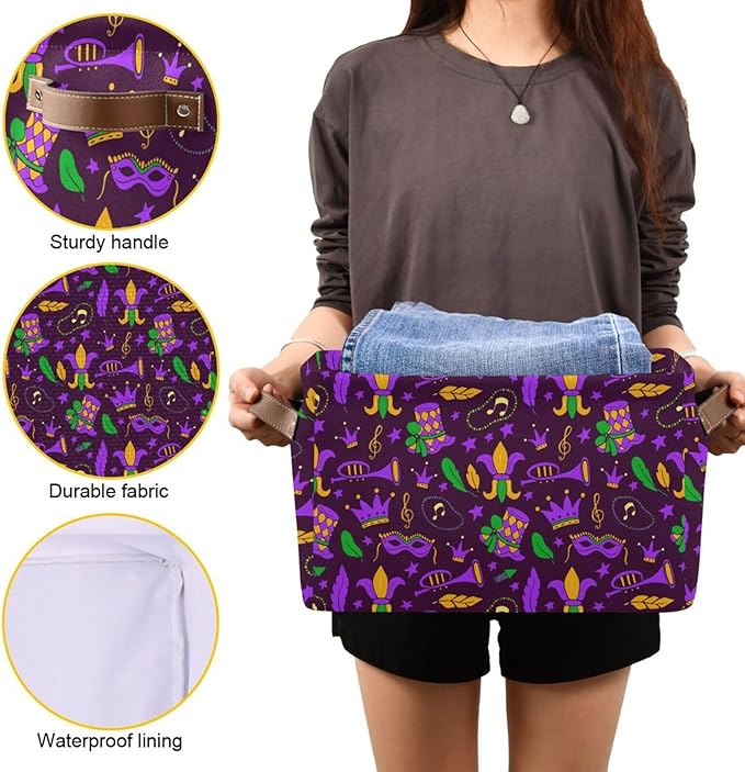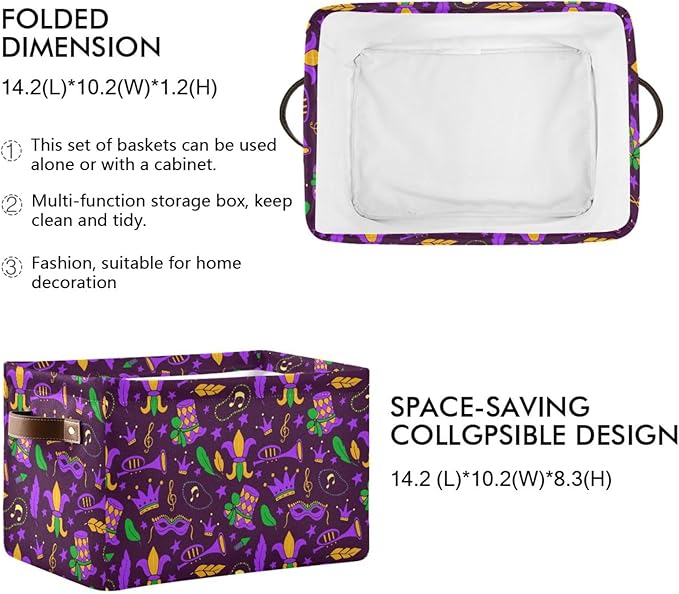 Mardi Gras Carnival Storage Basket Cube Storage Bins Organizer Bag Collapsible Closet Shelf Baskets with handle for Baby Cloth Pet Toy Book 14.2×10.2×8.3 IN