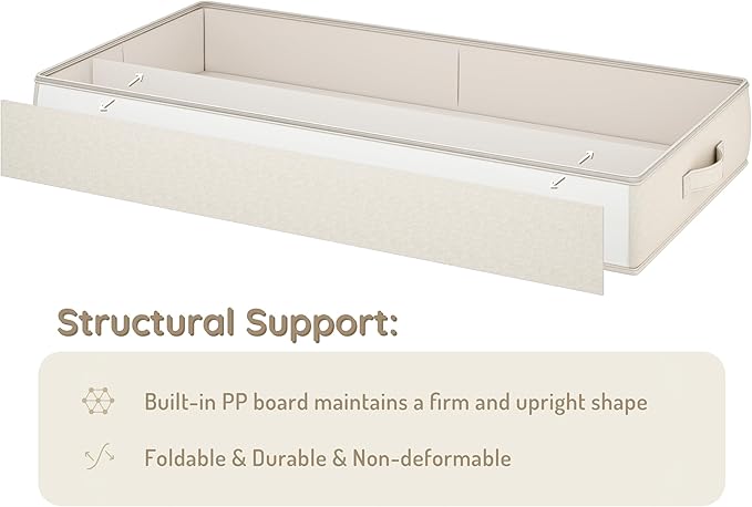 - 【High-end Fabric & Large Capacity】Crafted from high-end, durable fabric, our under bed storage bags measure 33.7"L x 17.1"W x 6"H inches each, offering generous space for your essentials. These containers are your ultimate solution for storing bulky items like seasonal clothing, comforters, and blankets, combining spaciousness with a sophisticated beige design