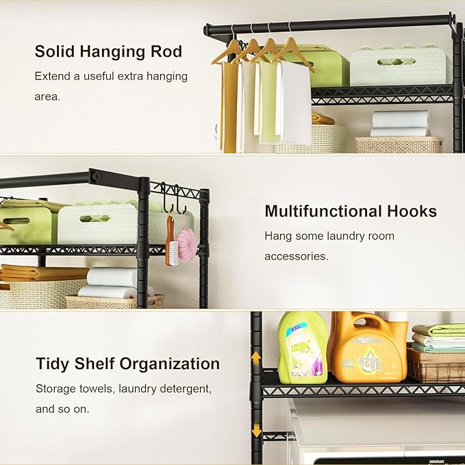 - [Easy to Install]: Following the detailed instruction manual and assembly video can install the laundry room organization quickly. Any issues can contact us at any time