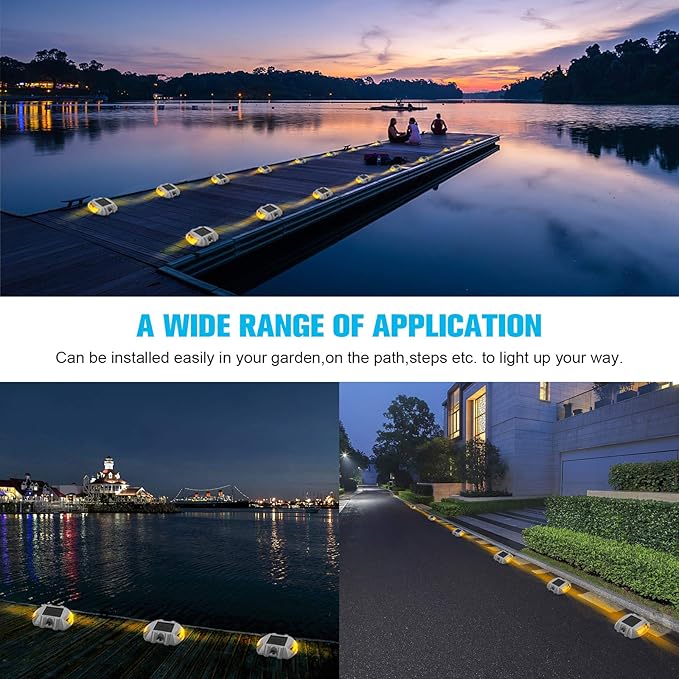 - 【Solar Powered】Eco-Friendly Rechargeable solar panels,automatically recharges during the day and glows when night falls.Each light has 6 leds which gives out Intensityt and steady light.we could have called these Deck Dots, Stair Dots, Pier Dots or Boardwalk Dots