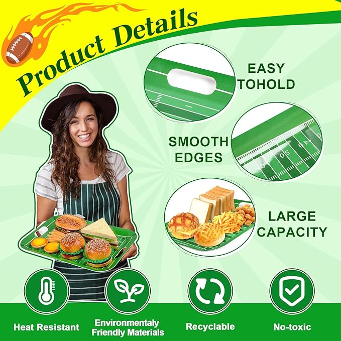 - Easy to Clean: Football rectangular tray for serving food features smooth surface that is effortlessly cleaned by simply wiping it with a damp cloth. They're stackable, saving space when not in use.