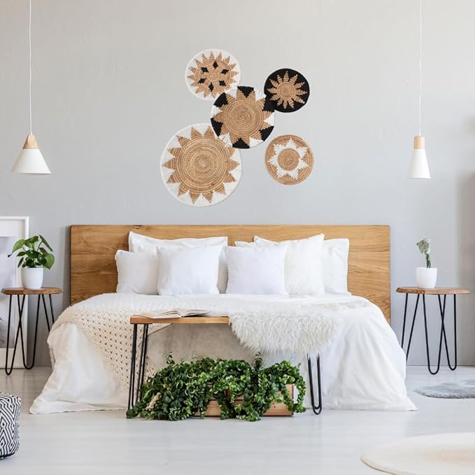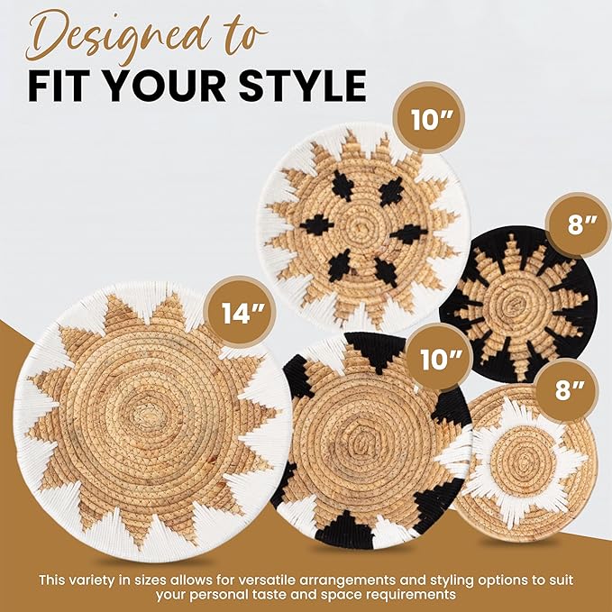 - ๐๐๐ง๐๐๐ซ๐๐๐ญ๐๐ ๐๐ฑ๐๐๐ฅ๐ฅ๐๐ง๐๐:Transform your room with our set of 5 unique bohemian woven wall decor baskets. Made from rattan, corn husks, and other natural materials. Each basket wall art brings texture and warmth to your space. Create a stunning accent wall, brighten a dull room, or add charm to an entryway with this versatile boho basket set, perfect for the bedroom, living room, office, or any special occasion.