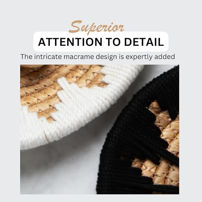 - ๐๐ฎ๐ฌ๐ญ๐๐ข๐ง๐๐๐ฅ๐ ๐๐๐๐ฎ๐ญ๐ฒ: Embrace nature and prioritize sustainability by using natural, eco-friendly and sturdy wicker wall art set. Crafted from 100% natural seagrass wall decor by skilled Vietnamese artisans, Each of our decorative wall baskets is adorned with macrame. Adding a unique, handmade touch to your wicker wall decor. These round wall decor are handmade and carefully woven as wicker wall basket.