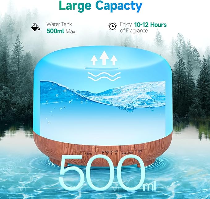 Diffuser, YIKUBEE Essential Oil Diffuser, 500ml Humidifier, Diffusers for Home, Aromatherapy Diffuser with Remote Control, Diffusers for Essential Oils Large Room