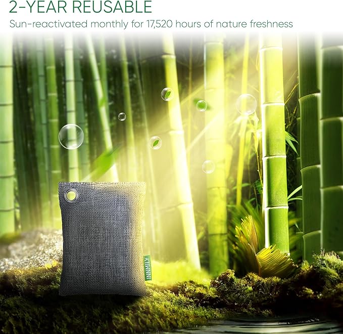 - TOGETHER, PLANTING A FOREST - We invite you to join us in tree-planting initiative - every purchase of Innimily bamboo charcoal air purifying bag, a tree will be planted in your name, let’s contribute to reforestation, aligning your well-being with environmental responsibility. natural solution that not only captures odors but also contributes to sustainability. Innmily home deodorizer bring fresh air, we offer no question asked money-back guarantee if you were not satisfied with the smoke absorber