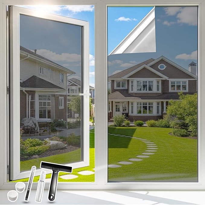 - DAYTIME PRIVACY: Window tint creates a one-way mirror effect during the day, ensuring privacy while allowing you to enjoy the outdoor view without the influence of outside observers. Note: The mirror effect is reversed when indoor light exceeds outdoor light. At night, when the sunlight disappears, the indoor light is stronger than the outdoor light, the inside of the window film will show a mirror effect, the indoor view can be seen outside. Remember to close the curtains at night for privacy.