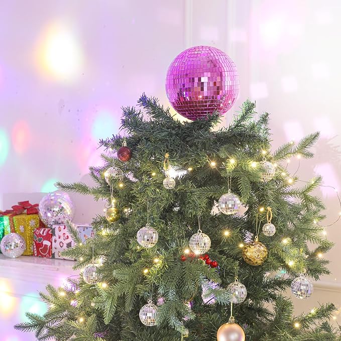 - Disco Ball Christmas Tree Toppers: you will get 1 piece of 8 inch disco ball Christmas tree topper in the package, which is covered with many pink mirror glass squares on the surface, will shiny and reflect light in the sun to make your Christmas tree look more eye catching, creating a strong festival atmosphere