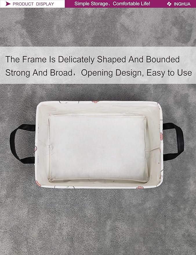 Rectangular Storage Basket Fabric Organizer Bin for Toys,Books,Clothes,Gifts,Pets-Perfect for Home,Office,Nursery,Dorm,Shelf(Rec-rabbit)