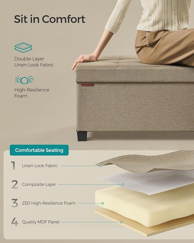 - 【STURDY AND DURABLE】Built with premium MDF panels and reinforced with metal corner guards on the lid, this storage chest is strong enough to support up to 660 lb (300 kg), making it a reliable seating or storage solution that will stand the test of time