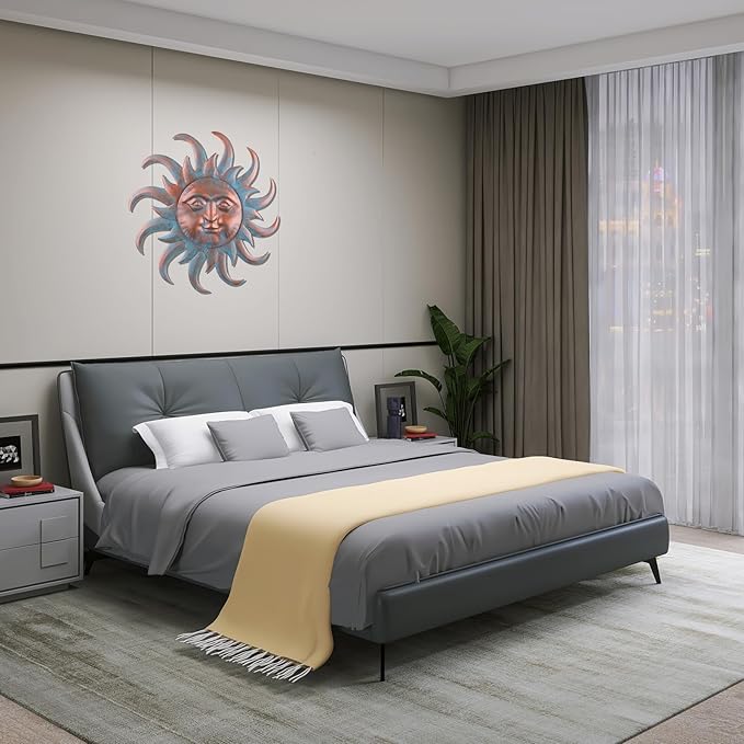 - 【Easy to Install】The sun large outdoor wall decor you receive is disassembled. No extra tools are needed, just point the edge of the sun at the hole and tighten the screws. Metal pieces without hooks are assembled in no particular order, and you can assemble them as you like. Metal sun wall decor has hooks on the back, easy to hang.
