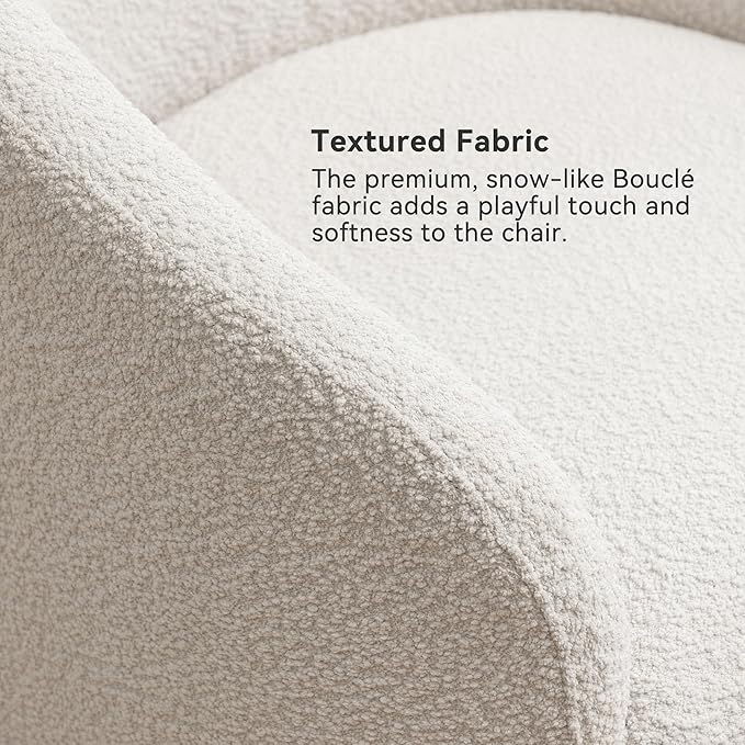 - PREMIUM BOUCLE FABRIC: The boucle upholstered swivel barrel chairs are covered in a premium boucle fabric that not only looks great but also feels cozy and soft to the touch. The texture of the boucle fabric adds an extra layer of comfort to the chairs, making it a great option for anyone looking for a comfortable seating option.