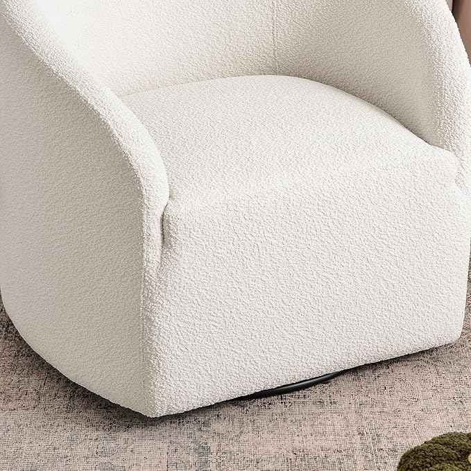 - STURDY BASE & FRAME: The boucle chairs' 360-degree swivel metal base allows for versatile and flexible seating options, and the frame of the swivel chairs is made of sturdy solid wood. You can easily turn the chairs to face different directions or turn towards different parts of the room without getting up.