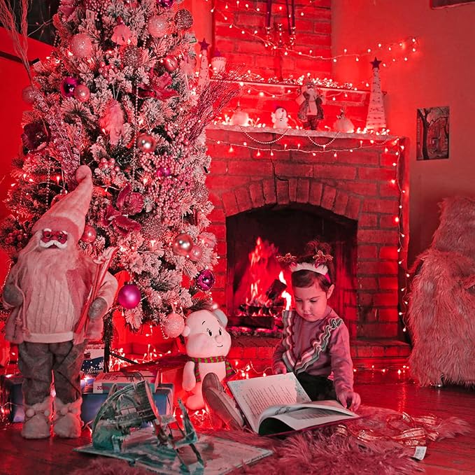 - Waterproof Fairy Lights Plug in: The red Christmas lights design with IP44 outdoor waterproof, can withstand wind, snow, rain and extreme weather. String lights are equipped with a UL certified 29V low-voltage plug ensures the safety. It's safe for family with kids or pets!
