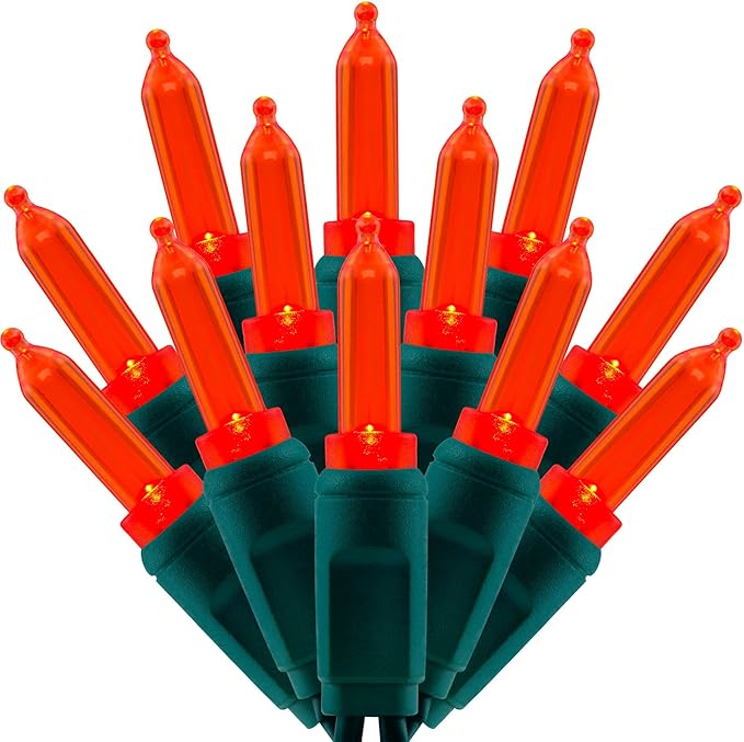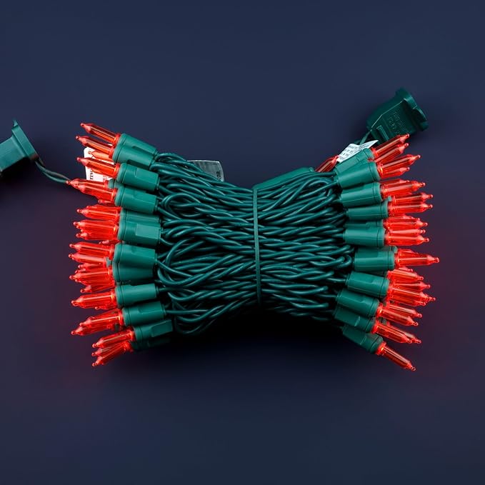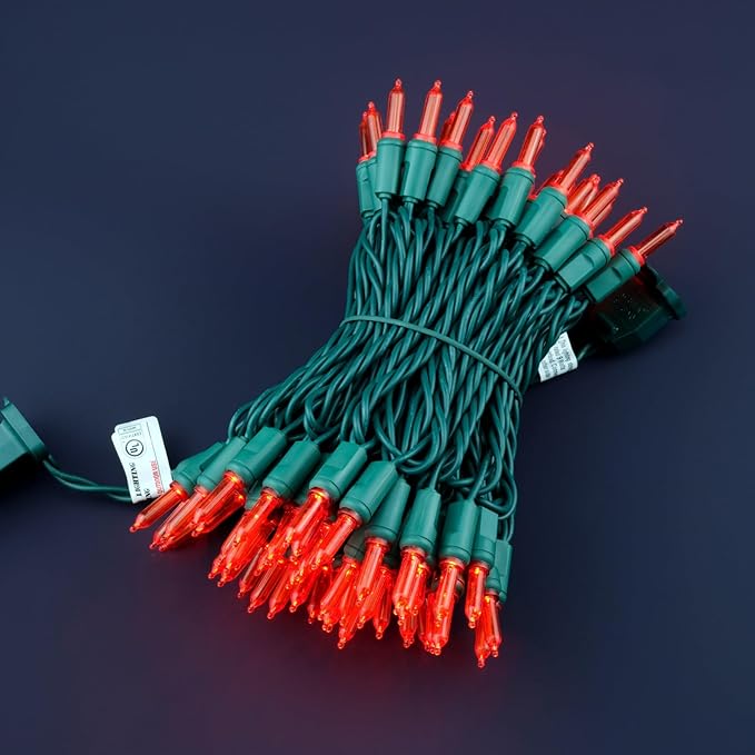 - SPECIFICATIONS ☀ Each pack contains 1 strands of one-piece string lights, total length 33 feet with 100 count red mini lights. 22 AWG green cord, 4" lead, 4" spacing, 4" tail.