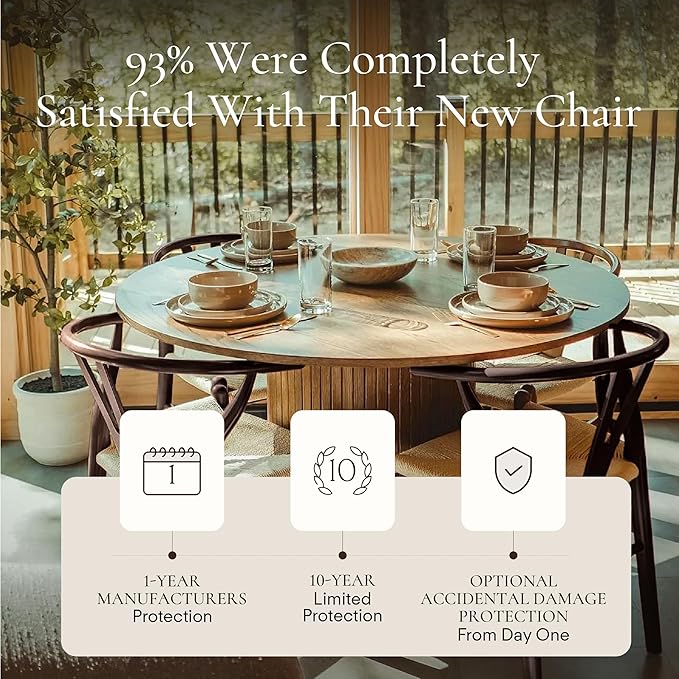 - Mid-century form. Everyday comfort: Inspired by the iconic wishbone dining chair silhouette, these woven dining chairs combine clean lines, curved support, and lightweight open frames. Built-in arms and gently arched backrests provide added comfort. Their airy, sculptural design brings visual warmth and inviting texture—making them versatile pieces for everyday use.