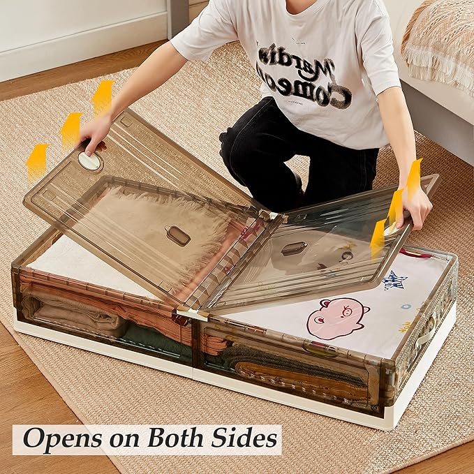 - 【Foldable Storage Boxes】Our storage bins with lids under bed are easy to assemble – simply unfold the four sides, connect them, and add the lid and wheels. When not in use, you can fold them and place under bed storage containers plastic in a corner or under the sofa, saving a significant amount of space.