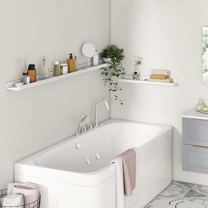 Picture Ledge Shelf, Floating Shelves Set of 2, Solid Pine Wood 72'' Long Large Nursery Book Shelves for Toys Storage, Kids Bookshelf for Living Room Bedroom Decor Books Photo Frames, White
